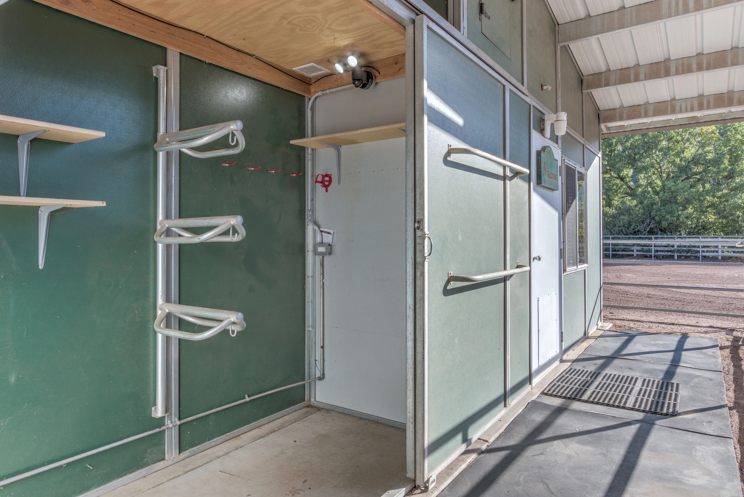 Tack room is lighted, climate controlled and lockable.